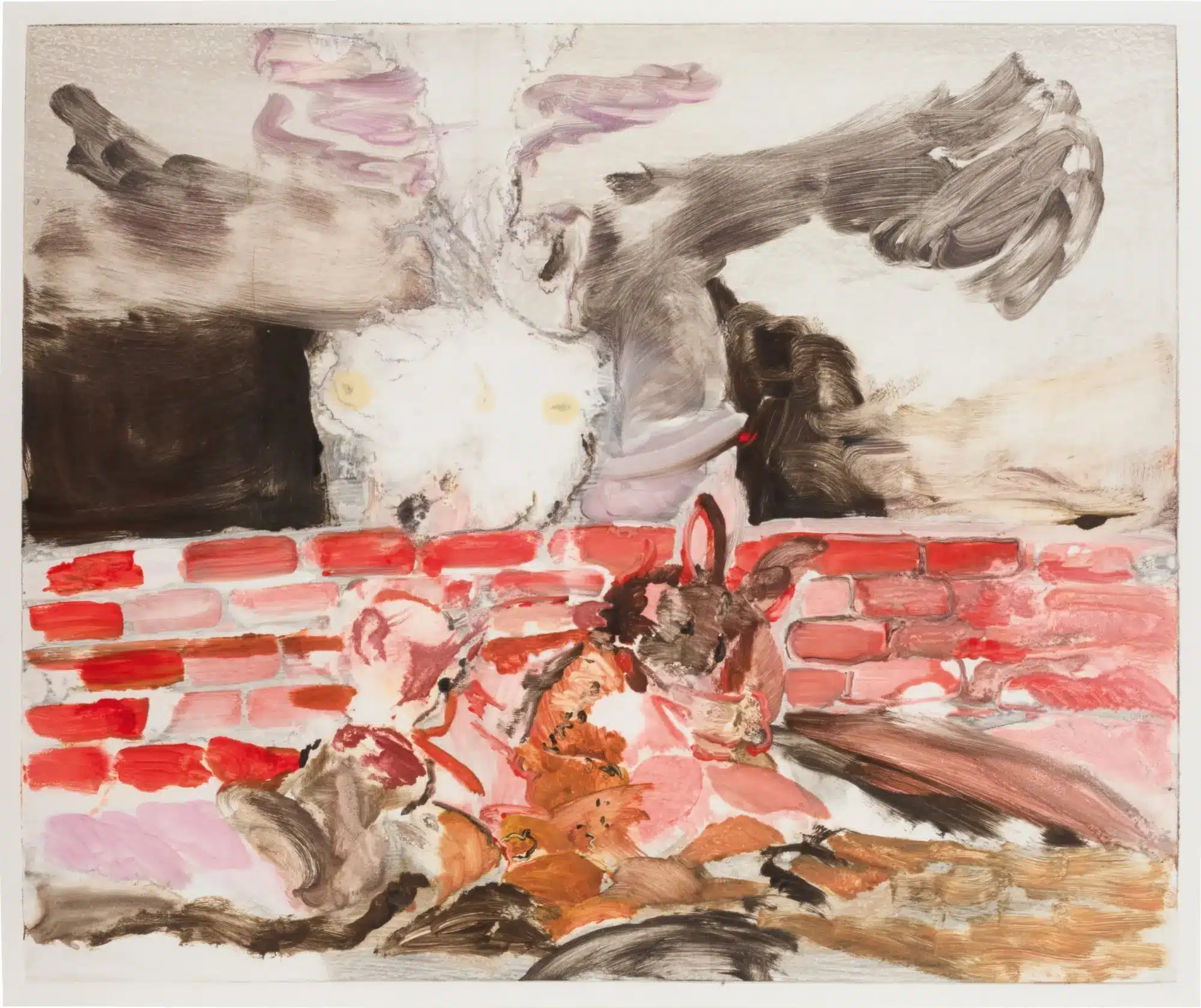Brown’s paintings often suggest figures without defining them—swaths of skin tones, hints of limbs, erotic pulses of colour. Works like The Sleep Around and the Lost and Found or Teenage Wildlife tease narrative without delivering it, seducing the eye into ambiguity.